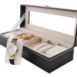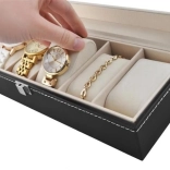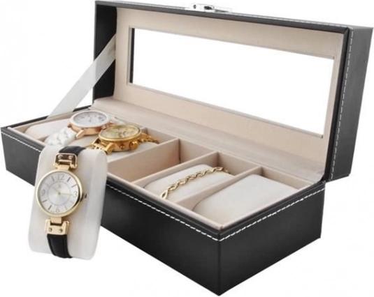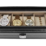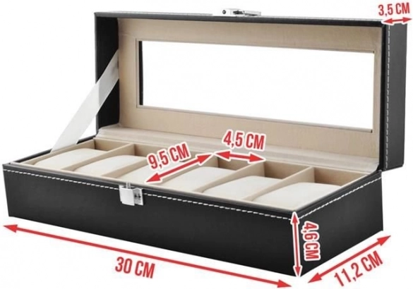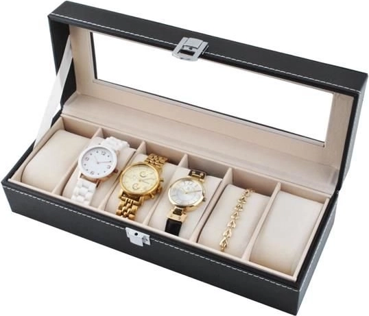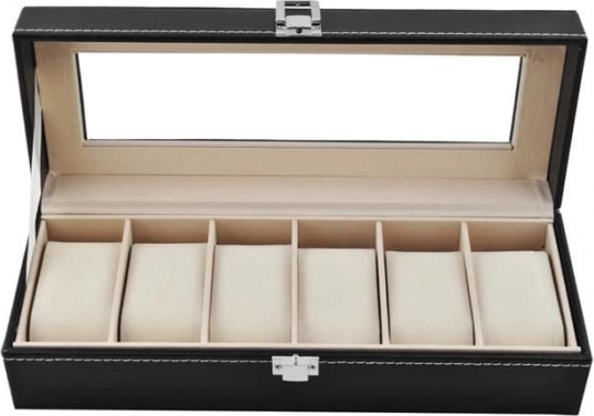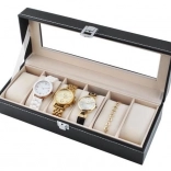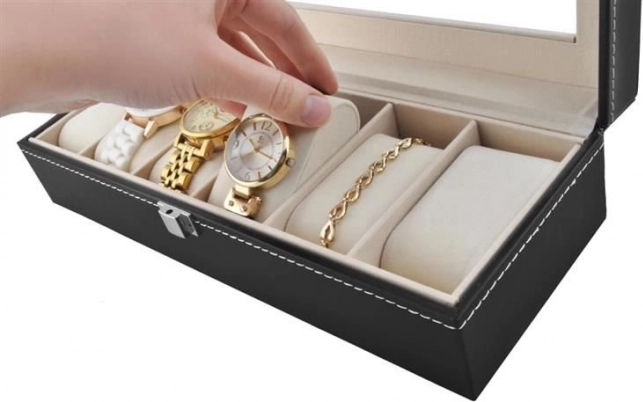 Predstavujeme vám elegantný organizér na hodinky, ktorý sa pýši až 6 samostatnými priehradkami. Tento organizér nie je určený iba na hodinky, ale môžete do neho bezpečne uložiť aj inú bižutériu, a to vďaka mäkkému materiálu vnútri, ktorý chráni proti poškriabaniu.