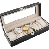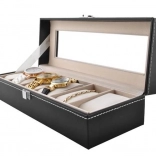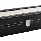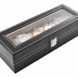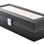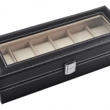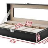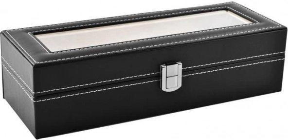 Model má štýlový čierny dizajn s kontrastnými švami, čo dodáva celej krabičke nádych elegancie a luxusu. Sklenené veko zaisťuje, že svojim hodinkám nielen poskytnete ochranu, ale zároveň ich efektne vystavíte.