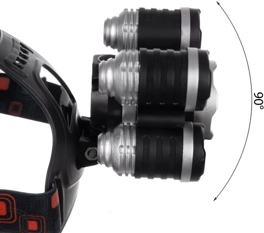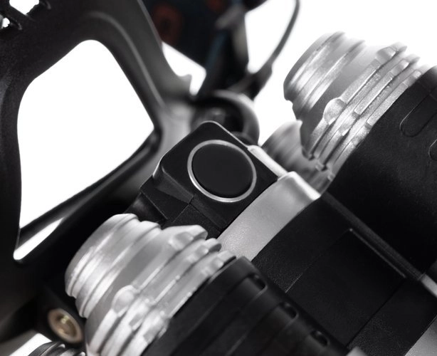 Tri predné moduly s 5× CREE T6 poskytujú široký aj sústredený kužeľ. Hlavicu naklopíte až o 90° pre presné nasmerovanie.
