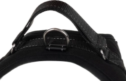Praktické horné madlo uľahčí pridržiavanie alebo prenesenie cez prekážky. Kovový D-krúžok zabezpečí rýchle a isté pripnutie vôdzky.