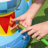 Nafukovací park ponúka bazén, šmýkačku, sprinkler a vesmírnu hru na hádzanie kruhov, ktoré poskytnú zábavu na dlhé hodiny.