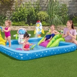 S nafukovacím vodným ihriskom Galaxia BESTWAY čakajú na deti interaktívne a dynamické zážitky plné zábavy. Tento kompaktný bazén ponúka rad atrakcií, ktoré podporujú kreatívnu hru a uľahčujú ochladenie počas letných dní. Farebné prvky a vesmírna tematika sú navrhnuté pre maximálnu radosť z hry.