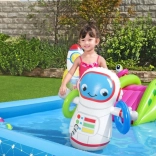 Nafukovacie vodné ihrisko Galaxia BESTWAY poskytuje nekonečné hodiny zábavy pre deti. Tento farebný bazénový set s vesmírnou tematikou zahŕňa zábavné prvky ako šmýkačku, sprinkler a hru na hádzanie kruhov, vyrobený z vysoko kvalitného PVC materiálu.