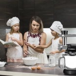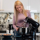 V balení nájdete tri nadstavce: háčik na cesto, balónovú metlu a miešaciu metlu so silikónovými stierkami pre dokonalé spojenie surovín. Stabilná základňa s protišmykovými prísavkami, bezpečnostný zámok a LED podsvietené ovládacie koliesko robia z robota spoľahlivého partnera na pečenie aj každodenné varenie.