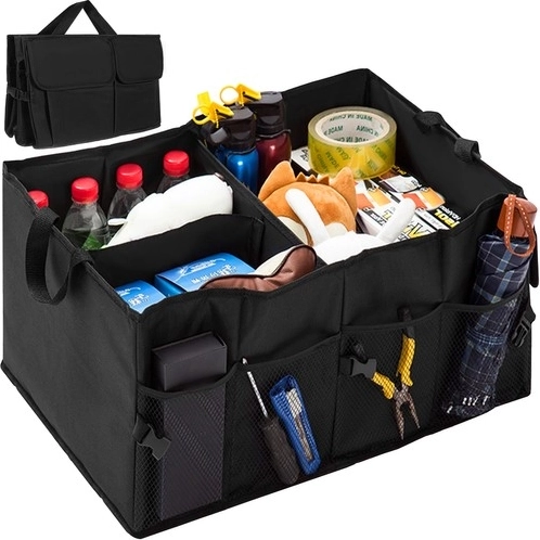 Praktický organizér do kufra pomôže udržať všetko na svojom mieste – od nákupov cez náradie až po vybavenie na výlety. Odolná tkanina Oxford a spevnené steny chránia obsah a bránia jeho posúvaniu počas jazdy. Vďaka premyslenému členeniu s jednou veľkou a dvoma menšími komorami a bočnými vreckami budete mať všetko rýchlo po ruke.