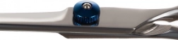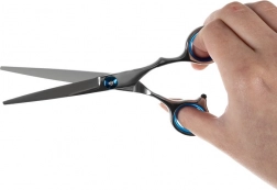 Modré vložky do prstov, opierky prstov a hladký kĺb s modrým skrutkovaním zaisťujú pohodlie, stabilitu a presnosť aj pri dlhšom strihaní.