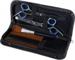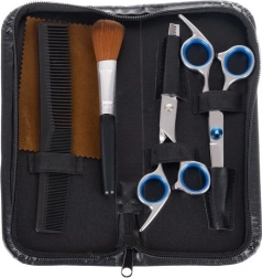 - nožnice, degažovacie nožnice (27 zubov), hrebeň, štetec, čistiaca handrička, kadernícka pláštenka, puzdro