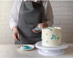 Vybavený odnímateľnou základňou pre jednoduchú manipuláciu, otočný mechanizmus umožňuje plynulé rotácie v oboch smeroch, čo uľahčuje aplikáciu polevy a ďalších dekorácií. Pripojené tri dekoračné špachtle majú rôzne vzory, ktoré umožňujú vytvárať jedinečné a kreatívne povrchy na vašich tortách.