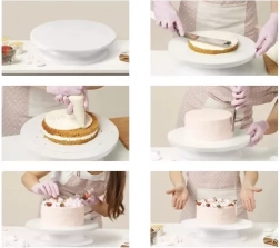 Otočný tortový stojan Ruhhy je ideálnym pomocníkom pre každého, kto sa zaujíma o zdobenie tort na profesionálnej úrovni. Vyrobený z kvalitného plastu, ktorý zaisťuje trvanlivosť a ľahké čistenie. Tento stojan nielenže uľahčuje prácu pri zdobení, ale aj elegantne pôsobí ako podnos pre vaše dezerty.