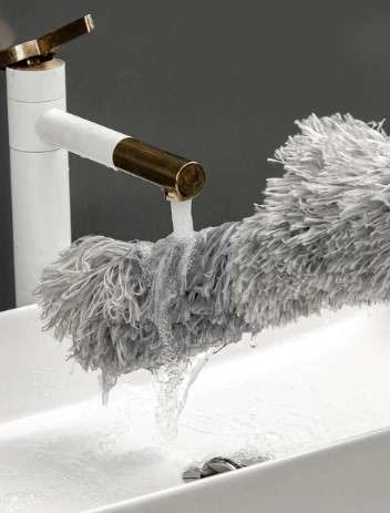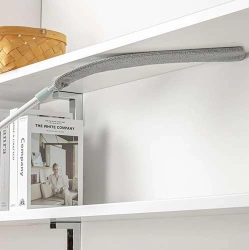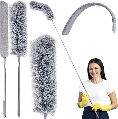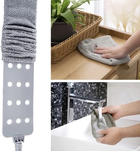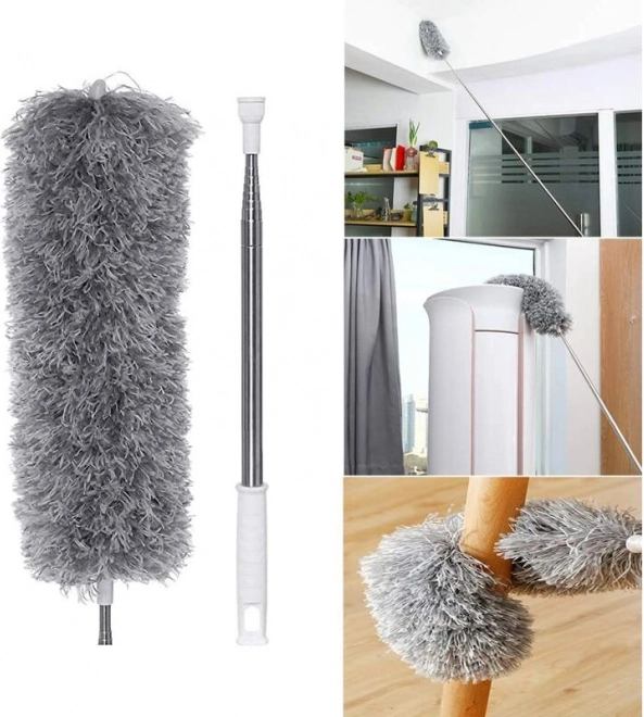 S teleskopickou rukoväťou vyrobenou z nehrdzavejúcej ocele dosiahnete aj na ťažko dostupné plochy, ako sú stropy alebo vrcholy vysokých skriní, bez rizika pádov alebo namáhania tela.