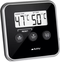 Upečte šťavnaté mäso, temperujte čokoládu alebo postrážte kávový nálev s istotou správnej teploty. Digitálny teplomer RUHHY s nerezovou sondou spoľahlivo meria v rozsahu −20 až 250 °C s krokom 1 °C. Veľký LCD displej je skvele čitateľný a umožní rýchlo nastaviť cieľovú teplotu aj prepínať medzi °C a °F.