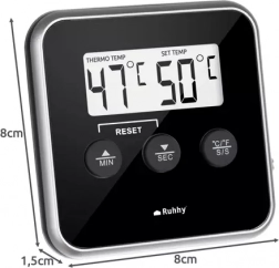 Po dosiahnutí nastavenej teploty sa spustí zvukový alarm. Integrovaná minútka a magnet na zadnej strane uľahčia časovanie a prichytenie na kovové povrchy.