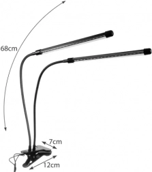 Táto praktická dvojhlavová grow lampa so 40 LED diódami kombinuje červené (630 nm) a modré (470 nm) spektrum, ktoré podporuje fotosyntézu, zakoreňovanie, rast aj kvet. Vďaka flexibilným husím krkom ľahko nasmerujete svetlo presne tam, kde ho rastliny potrebujú, a klipom ju pripevníte na policu či stôl.