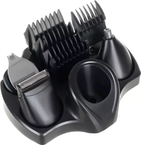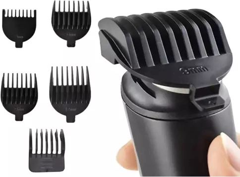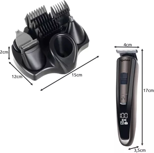 Zastrihávač ponúka široké spektrum použitia: od strihania a úpravy vlasov, cez holenie fúzov a brady, až po úpravu obočia a zastrihávanie chĺpkov v nose a ušiach. Balenie obsahuje 5 vymeniteľných nástavcov vrátane zastrihávača nosa a holiaceho nástavca, ako aj 5 vodiacich hrebeňov, nabíjací kábel, stojan, mazací olej a čistiacu kefku. Vďaka variabilným dĺžkam strihu a zabudovaným možnostiam nastavenia výšky je zastrihávanie vlasov, fúzov a brady na požadovanú dĺžku a tvar jednoduché a presné. Zastrihávač je vybavený aj LCD displejom, ktorý zobrazuje stav batérie a informuje vás o uzamknutí prístroja, čím zabraňuje náhodnému spusteniu počas cestovania alebo skladovania.