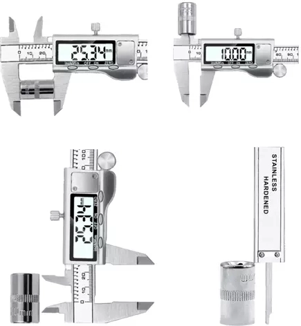 ?3 TIPY MERANIA - Posuvné meradlo sa používa na meranie vonkajšieho, vnútorného priestoru a hĺbky. Každý rozsah merania je 150 mm/6 palcov.