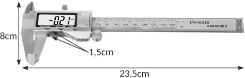 ? S ŠPECIFIKÁCIE - Merná jednotka: palec/mm ; Zámok: áno; Presnosť: ± 0,02 ; Dĺžka: 15 cm; Výška číslice: Výška 1,7 cm; Vonkajšie meranie: 15 cm; Vnútorné meranie: 15 cm; Meranie hĺbky: áno, majú meranie hĺbky od 15 cm; Rozmery: 23,5 x 8 x 1,5 cm; Hmotnosť: 0,324 kg; Hmotnosť v balení: 0,343 kg.