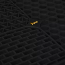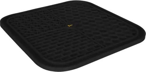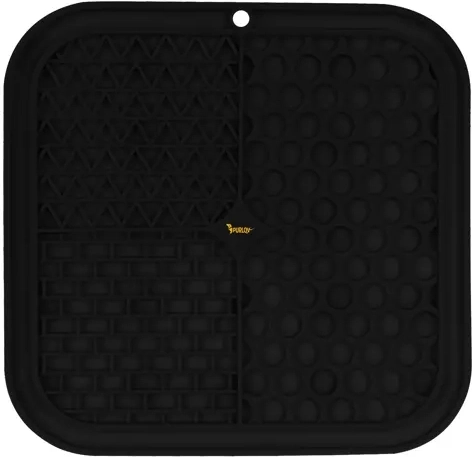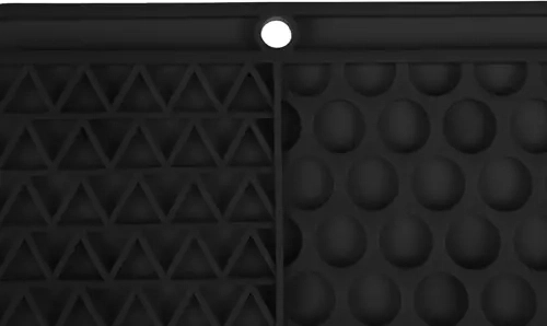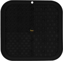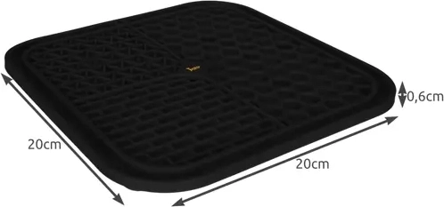 Podložka je protišmyková vďaka silným prísavkám na spodnej strane – drží na hladkých povrchoch (vaňa, sprcha, dlažba) aj na podlahe. Výstupky šetrne masírujú ďasná a pomáhajú obmedziť zvyšky potravy v papuli, čím podporujú čistotu a svieži dych. Vďaka členitým drážkam zviera potravu získava postupne, čo spomalí hltanie a podporí lepšie trávenie.