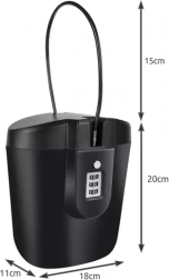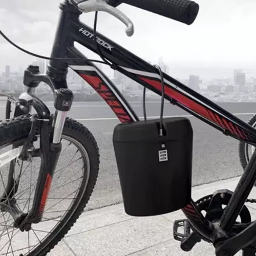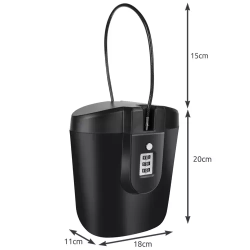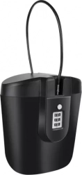 Oceľové lanko s dĺžkou 37 cm umožňuje sejf pripevniť k lavičke, ležadlu či nákupnému vozíku pre vyššiu úroveň zabezpečenia.