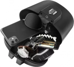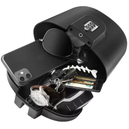 Do sejfu pohodlne uložíte mobilný telefón, kľúče, platobné karty, doklady a ďalšie drobnosti. Konštrukcia z odolného plastu je rezistentná voči poveternostným vplyvom a chráni obsah pred striekajúcou vodou, takže sa môžete v pokoji kúpať, športovať alebo oddychovať.