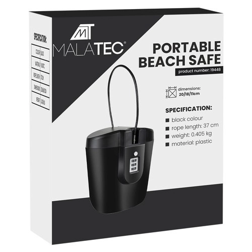 Chráňte svoje cennosti kdekoľvek ste. Prenosný plážový sejf s integrovaným číselným zámkom a oceľovým lankom (37 cm) umožňuje spoľahlivé pripútanie k pevným predmetom. Kompaktné rozmery a nízka hmotnosť z neho robia skvelého spoločníka na pláž, k bazénu, do hotela aj do fitka.