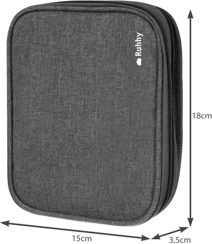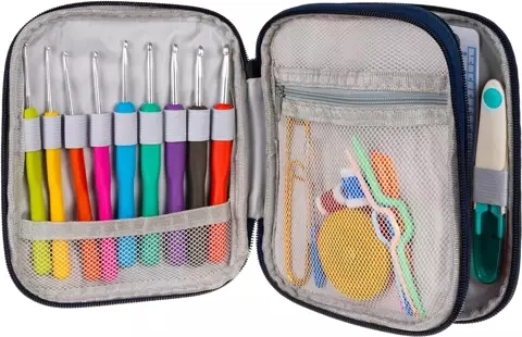 Všetky háčiky a doplnky sú uložené v odolnom a prenosnom textilnom puzdre, ideálnom na cestovanie.