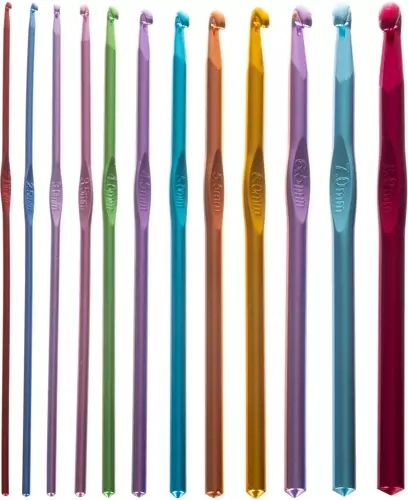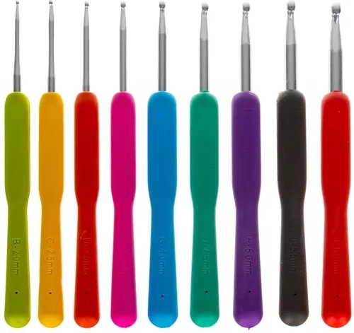 Sada obsahuje 21 farebných háčikov rôznych veľkostí s ergonomickým dizajnom pre jednoduché a pohodlné použitie.