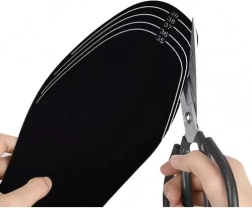 Vložky môžete jednoducho prispôsobiť veľkosti topánok od 35 do 39 jednoduchým strihom. Veľkostné značenie na vložkách umožňuje rýchlu a efektívnu úpravu bez zbytočného strácania času.