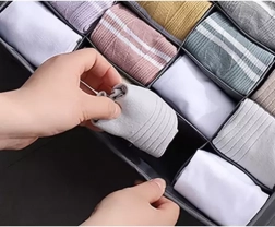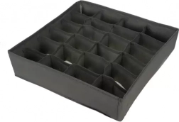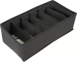 Praktická sada štyroch organizérov rôznych veľkostí udrží vaše zásuvky a skrine dokonale prehľadné. Každý box má pevne vystužené steny a šikovne rozvrhnuté priehradky pre konkrétny typ oblečenia – od podprseniek a nohavičiek po ponožky či kravaty. Priedušná netkaná textília bráni hromadeniu vlhkosti a pomáha udržať oblečenie svieže.