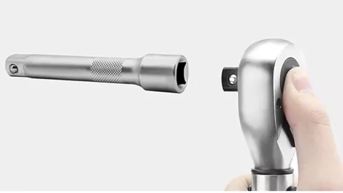 V balení nájdete všetko potrebné: 3 nástavce 17/19/21 mm a predĺženie pre lepší prístup. Kvalitné oceľové prevedenie odoláva deformáciám a prasknutiu, silikónové prvky zvyšujú komfort práce. Súčasťou je aj odolné puzdro, ktoré chráni nástroj pri skladovaní a preprave.