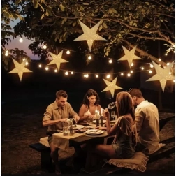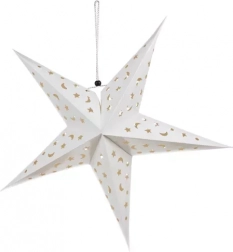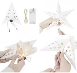 Osvetlená papierová hviezda LED je dokonalým doplnkom pre vašu sviatočnú výzdobu. Táto hviezda je vyrobená z jemného papiera s výrezmi v tvare hviezdičiek a mesiacov, ktoré po rozsvietení vytvárajú čarovnú svetelnú hru na stenách a strope. Ideálna pre rôzne miestnosti ako obývacie izby, jedálne, kuchyne alebo spálne.