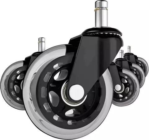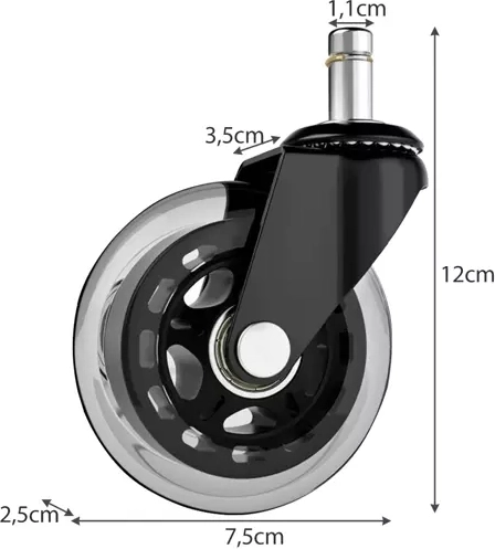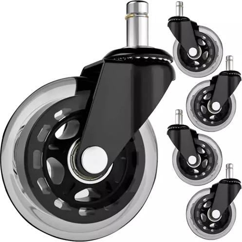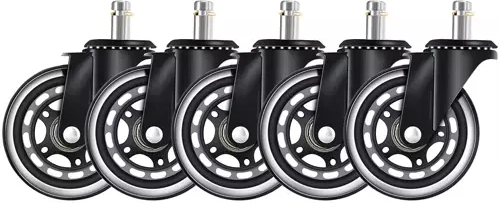 UNIVERZÁLNY - Súprava obsahuje 5 koliesok, ktoré umožňujú vymeniť celú päťhviezdičkovú základňu za kancelársku, hernú, otočnú alebo detskú stoličku . Súprava je vhodnápre väčšinu stoličiek dostupných na trhu s priemerom kolíkov 11 mm .