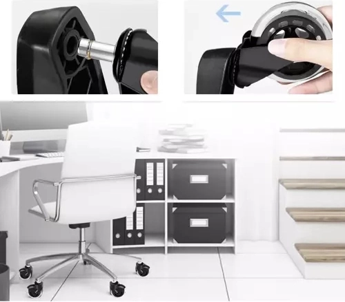 Jednoduchá montáž - výmenou koliesok vdýchnete svojej stoličke nový život! Montáž pomocou tlačidla a kliknutia je rýchla a jednoduchá, stačí zatlačiť kolík .