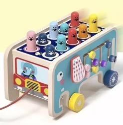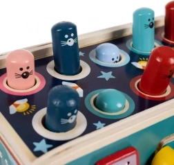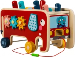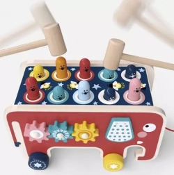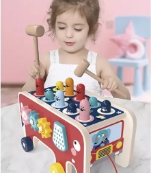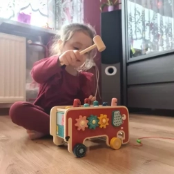 Táto hračka podporuje rozvoj jemnej motoriky a sústredenia vďaka interaktívnym prvkom ako sú kladivká a ozubené kolieska.