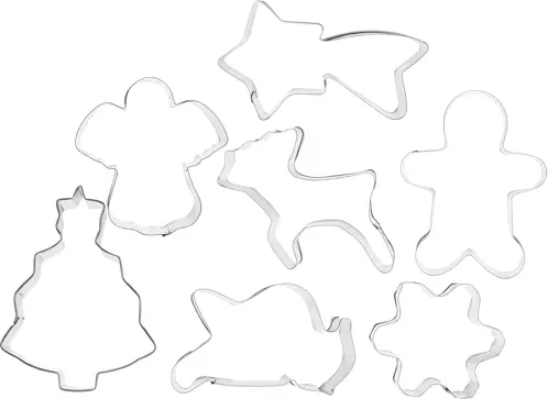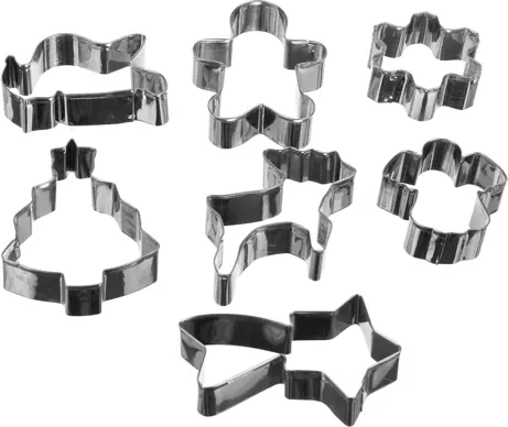 Praktická sada 7 kovových vykrajovačiek z nehrdzavejúcej ocele na jednoduché pečenie vianočného pečiva. Ponúka ostrý rez, pohodlný profilovaný okraj a 7 obľúbených tvarov. Ideálna na perníčky, sušienky aj fondán – odolná a ľahko sa čistí.