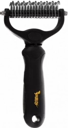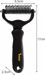 Obojstranné prevedenie pre všetky typy srsti. Jemnejšia strana (17 zubov, 0,4 cm) na finiš a citlivé miesta, širšia strana (9 zubov, 0,8 cm) na hustú podsadu a chuchvalce.