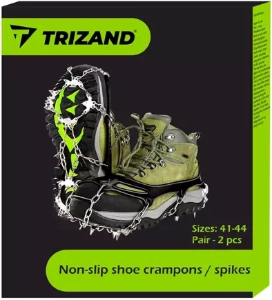 Stabilita a bezpečie na klzkom povrchu. Protisnehové návleky TRIZAND s kovovými hrotmi zvyšujú priľnavosť na zľadovatených chodníkoch, v meste aj v teréne. Elastický lem z TPE sa prispôsobí rôznym tvarom obuvi v rozsahu veľkostí L 41–44 a zároveň pevne drží, bez toho, aby topánky poškodzoval.