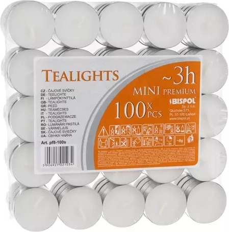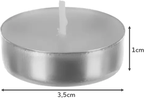 Veľké balenie 100 ks čajových sviečok s dobou horenia až 3 hodiny na vytvorenie príjemnej atmosféry aj praktické využitie. Vďaka kvalitnej parafínovej zmesi sviečky nedymia, nešpinia a vyhoria do konca. Sú bez vône, v kovovom kalíšku a skvelé do aróma lámp, svietnikov aj na ohrev jedál.