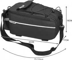 Termická cyklistická taška Trizand udržuje teplotu jedla i nápojov, čo ju robí ideálnou pre výlety a pikniky. Je vybavená reflexnými páskami pre vašu bezpečnosť a je ľahko pripojiteľná k akémukoľvek nosiču vďaka suchým zipsom. S kapacitou 9 litrov a odnímateľným popruhom na rameno je praktická a pohodlná.