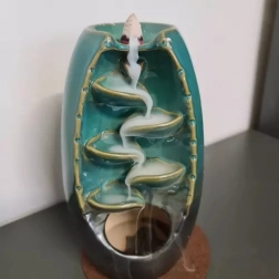 Keramický vonný komínek sa vyznačuje jednoduchým a elegantným dizajnom. Pri zapálení špeciálneho kadidla vytvára spektakulárny efekt vodopádu s dymom prúdiacim spätným tokom. Je vhodný do každého interiéru, poskytuje nielen vizuálne, ale aj aromatické potešenie.