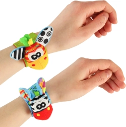 Roztomilé pásiky so zvieratkami zaujmú bábätko kontrastnými farbami a vzormi, hebkým textilom a rôznymi textúrami pre hmat. Každý pohyb ručičky odmení jemným zvukom chrastítka, ušká navyše ukrývajú šuchotavé fólie pre ďalšie zmyslové vnemy.