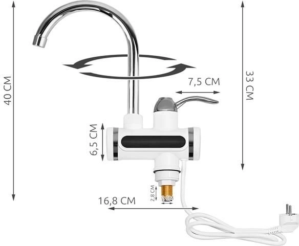 S výkonom 3000 W dosahuje ohrievač rýchly ohrev vody v rozsahu 30–60 °C. Otočná výtoková trubica zaisťuje flexibilitu a presné smerovanie prúdu vody. Moderný biely dizajn s pochrómovanými prvkami dokonale zapadne do akéhokoľvek interiéru. Vďaka bezpečnostným prvkom a splneniu normy IPX4K je chránený proti striekajúcej vode pod zvýšeným tlakom.