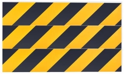 Žlto‑čierne diagonálne pruhy fungujú ako optické varovanie a uľahčujú odhad vzdialenosti od steny.