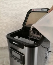 Vďaka automatickému čisteniu a časovaču nemusíte byť u výrobníka prítomní po celú dobu. Funkcia automatického programu umožňuje výrobu ľadu podľa plánu. Nastaviteľný displej a zvukové upozornenie zabezpečujú maximálne pohodlie a kontrolu nad spotrebou vody a stavom úložného koša.