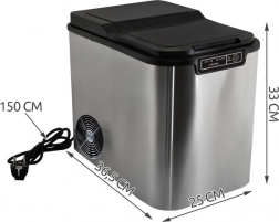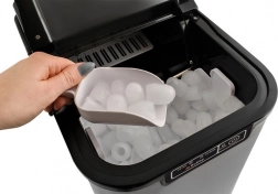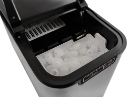 Stolný výrobník ľadu pre domáce použitie. Má vysokú kapacitu výroby až 12 kg ľadu denne a nie je potrebné priame pripojenie na vodu. Stačí naliať vodu do zásobníka a môžete začať s výrobou ľadu počas 9 až 13 minút.