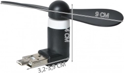 Praktický mini vetráčik s dvojitým konektorom 2 v 1 sa pripojí priamo do microUSB telefónu alebo do bežného USB portu (powerbanka, notebook). Energii si berie priamo z portu, takže nepotrebuje batérie ani nabíjanie. Na použitie s telefónom je potrebná funkcia OTG – pred nákupom si ju, prosím, overte. Vetráčik nefunguje cez redukcie či predlžovacie adaptéry.