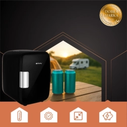 Kompaktná cestovná mini chladnička s objemom 4 l na chladenie aj ohrev nápojov a občerstvenia doma, v aute aj na cestách. Dvojité napájanie 230 V / 12 V, tichá prevádzka, zámok dvierok proti nechcenému otvoreniu a vyberateľná polička pre lepšiu organizáciu. Chladí až o 18–22 °C oproti okoliu a vie ohrievať na 55–65 °C.