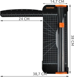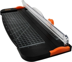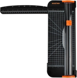 Táto rezačka na papier zvládne presné rovné aj šikmé rezy až do formátu A3. Prehľadná centimetrová aj palcová stupnica spolu s vyznačenou mriežkou a uhlomerom umožní rýchle a spoľahlivé zarovnanie dokumentov, fotografií či reklamných materiálov.