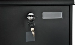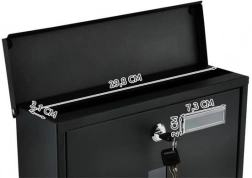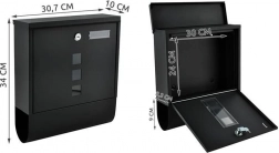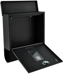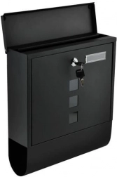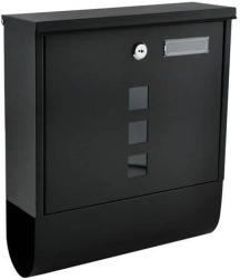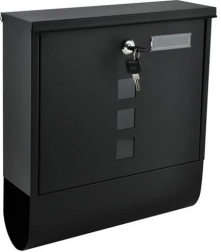 Elegantná čierna poštová schránka z odolného galvanicky pozinkovaného kovu zabezpečí bezpečné doručovanie vašej pošty. Má krytý vhadzovací otvor pre formát A4, uzamykateľné dvierka s 2 kľúčmi a praktický držiak na noviny a letáky. Robustná konštrukcia s ochranou proti poveternosti a vetracími otvormi udržiava zásielky v suchu, montáž je jednoduchá vďaka priloženému príslušenstvu.