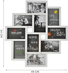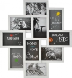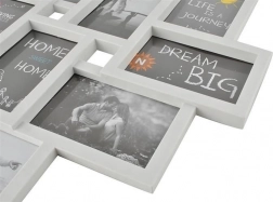 Vytvorte si originálnu galériu doma aj v kancelárii. Rám pojme až 10 fotografií (zvonku viditeľný formát približne 9×14 cm) a vďaka šikovne prepojenej konštrukcii šetrí miesto, ktoré by zaberalo desať samostatných rámikov. Minimalistický dizajn v bielej farbe sa hodí do každého interiéru a podčiarkne vaše obľúbené snímky.