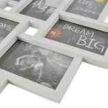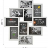 Štýlový rám na 10 fotografií s maximálnym formátom 10×15 cm prináša praktické riešenie na usporiadanie spomienok na jednom mieste. Oceníte atraktívny kolážový efekt, bezpečné prevedenie bez skla a jednoduchú montáž zavesením alebo opretím o stenu.
